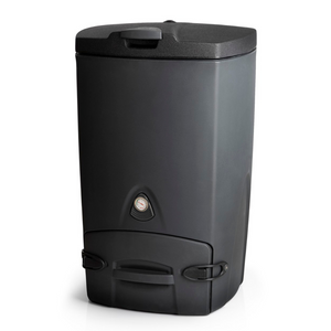 Der Biowaste-Komposter hat eine Ablauföffnung für ablaufende Flüssigkeit auf der linken Unterseite, um überschüssige Flüssigkeit abzuleiten. Platzieren Sie den Komposter direkt auf den Boden, damit der Boden eventuelle ablaufende Flüssigkeit aufnehmen kann. Alternativ können Sie die ablaufende Flüssigkeit separat in einen Behälter sammeln.